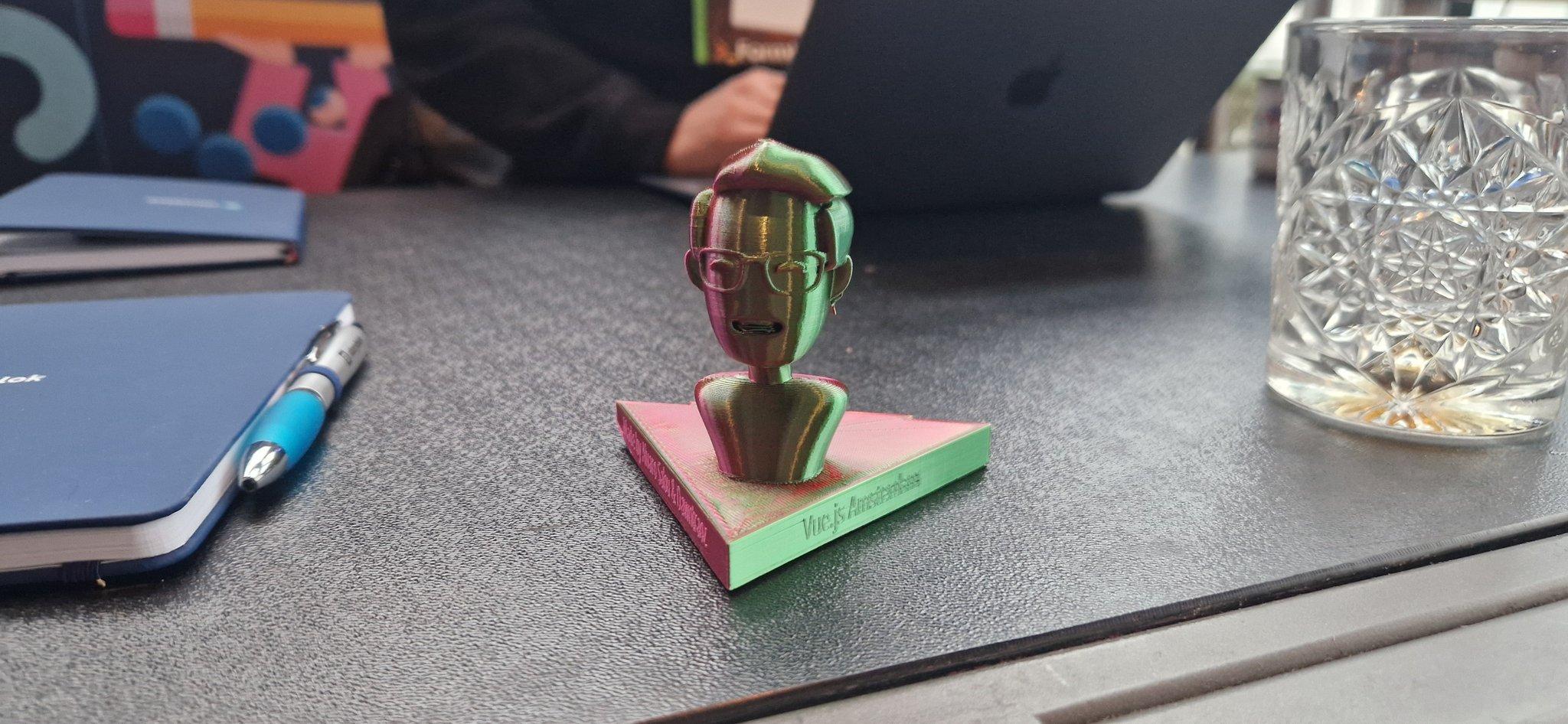 We even raffle with Storyblok a 3D printed version of Evan You as a surprise. (Thanks to Alba Silvente)